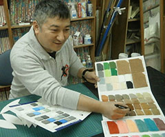 スチロールを削り出した原型を元に、実際に使用するウレタンの型紙を製作します。原型の型取り、型の拡大を経て、最終的な型紙を作成します。