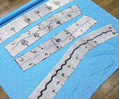 型紙を元に切り出したウレタン素材を組み合わせ、着ぐるみの骨格となる本体部分を製作します。