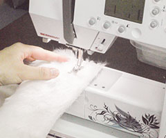 ウレタン素材を組み合わせた本体を型取り、着ぐるみの外側を覆うボア素材を縫製していきます。